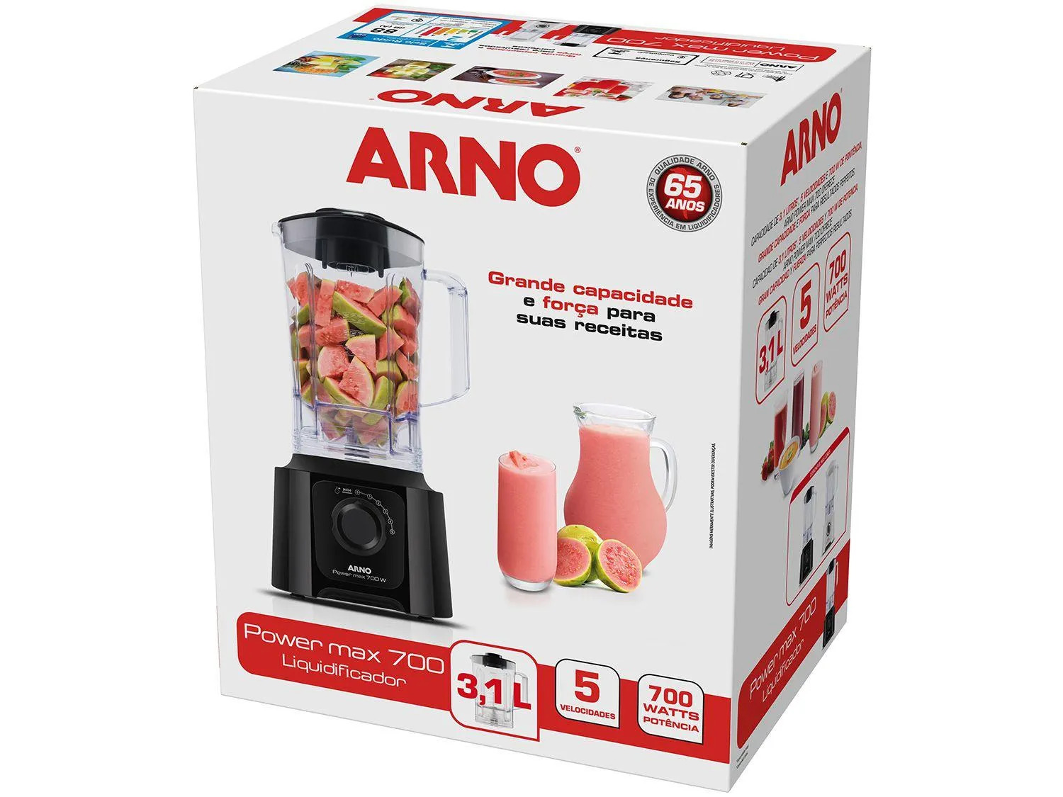 O Liquidificador Arno Power Max 700 une um design elegante à força e eficiência indispensáveis para o dia a dia na cozinha. Seu motor de 700W de potência, combinado com 5 níveis de velocidade e a função Pulsar, oferece o desempenho necessário para lidar com os mais variados ingredientes, garantindo misturas perfeitamente homogêneas, seja em vitaminas, massas ou molhos.